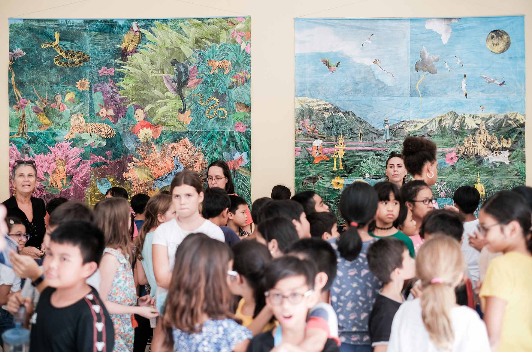 Ce projet, conçu par les artistes Lolita Bourdet et Charlotte Yonga , propose une exploration de la culture Khmer à travers son rapport à la nature en s’inspirant du conte traditionnel Le vieil homme et le Tigre et de la chanson Sous le ciel sur la Terre de Sinn Sisamouth.Les ateliers ont initié les élèves de 7 classes du lycée français René Descartes à Phnom Penh au Cambodge à diverses pratiques photographiques : le photomontage, la colorisation, le cyanotype et la chambre noire. Ils ont permis la réalisation de quatre œuvres collectives grand format installées depuis dans l’établissement.
